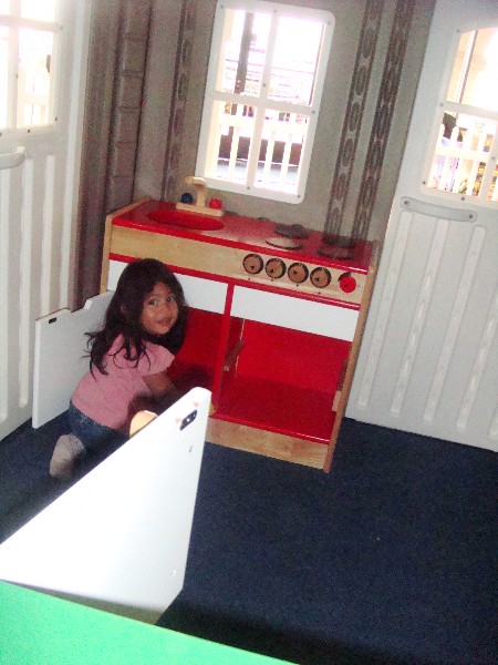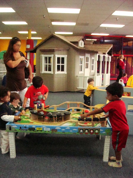 屋内にはお誕生日会でおなじみのジャンパー(バウンシングハウスっていうのかな?)、大きなキッチン付きプレイハウス、マクドナルドやチャッキーチーズで御馴染みの大きな滑り台付きプレイジム、男の子が大好きな電車レールコーナー、そしていたるところに大きなオモチャの車等、、。赤ちゃんオンリーのコーナーもあってハイハイの赤ちゃんも思う存分遊べます。